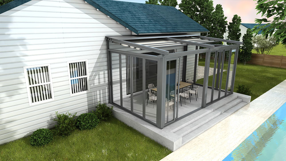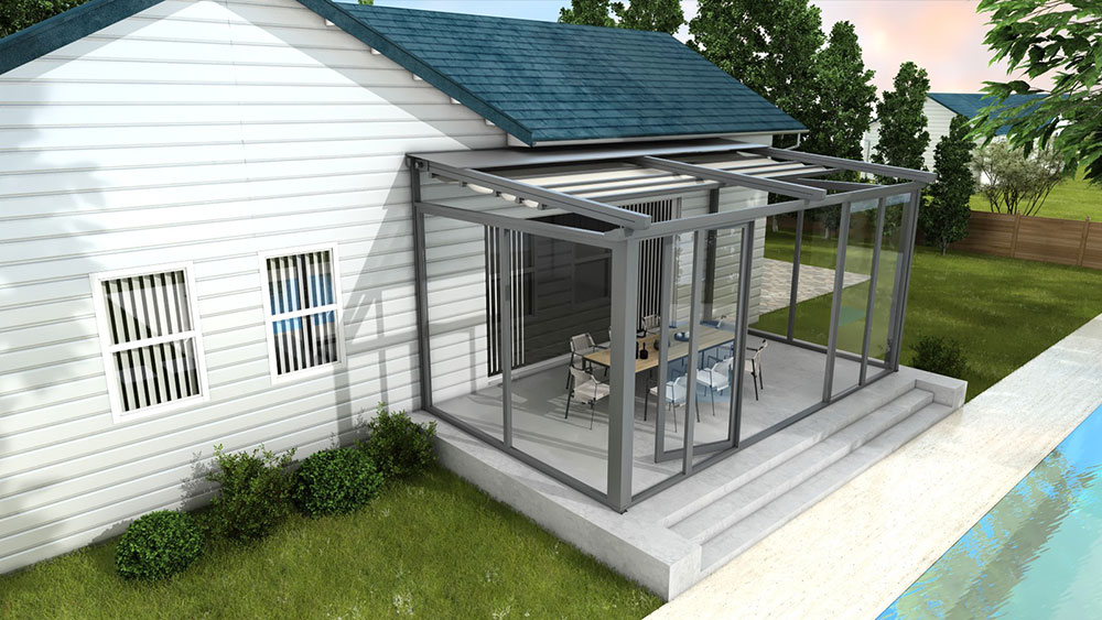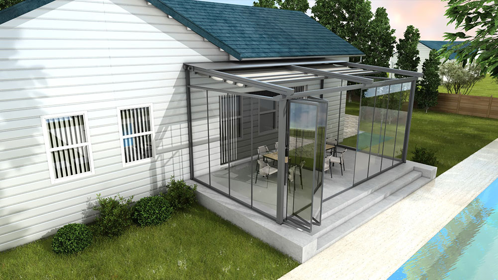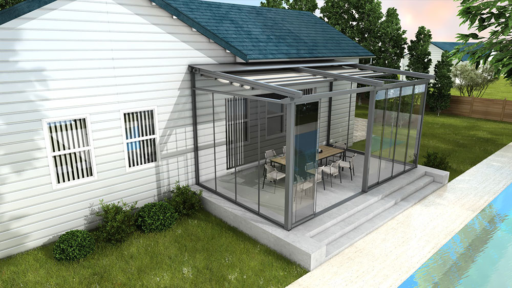 Glass Addition "Latte" motorized vynil roof system is the easiest way of shading. Any time you will have open or closed space according to your requirement whether it's a cafe, restaurant or a house.