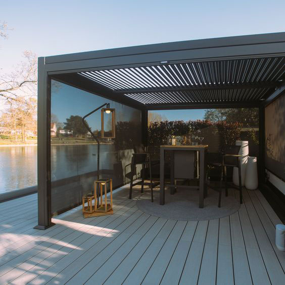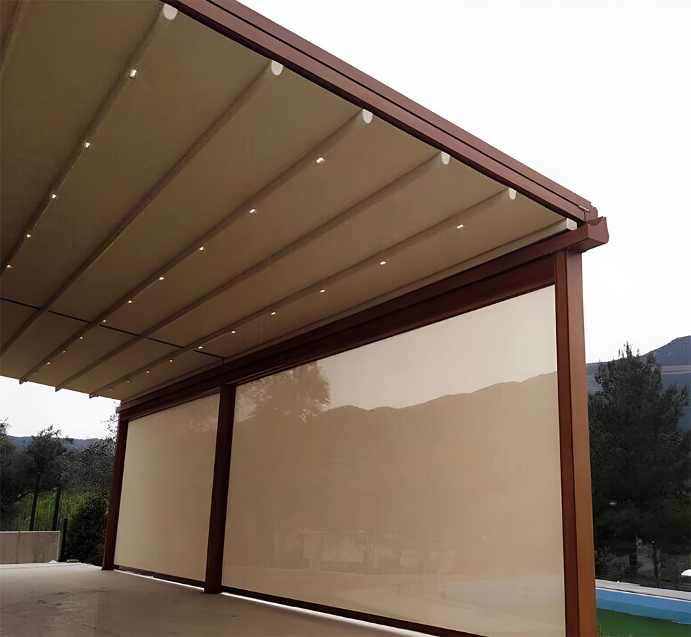 Sun screen systems, enable the air circulation in & out. Outdoor Curtain System allows you to see the outside without distributing your view when preventing sunlight.